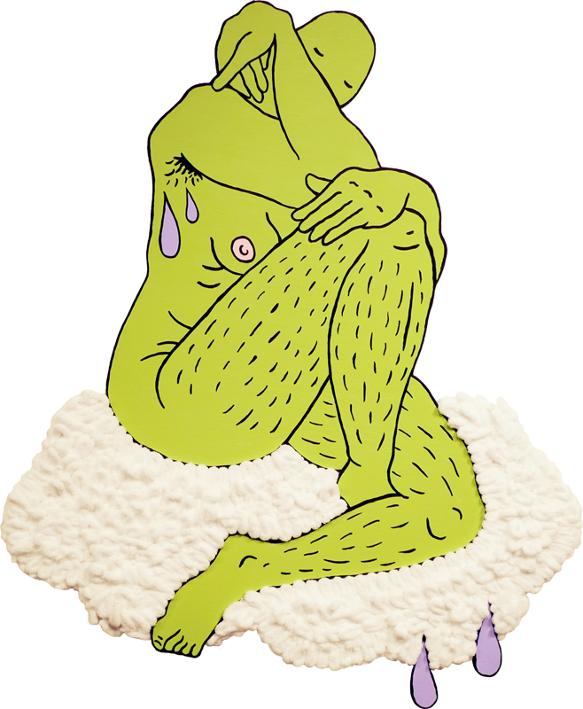 Shy Shower, 2022, acrylic and yarn on shaped plywood SOLD